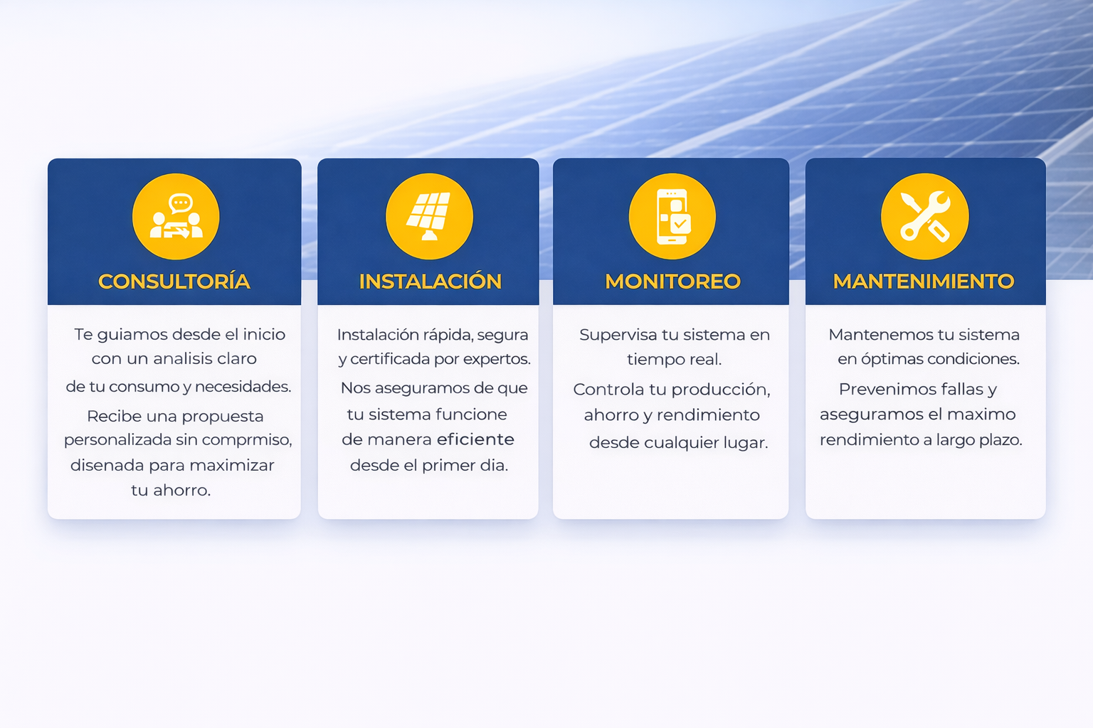 DILE Adiós a las facturas altas, Y SAluda tu propia energía Nuestros Servicios ¿Listo para reducir tu factura de electricidad? Déjanos tus datos y te ORIENTAMOS cómo aprovechar la energía solar.
